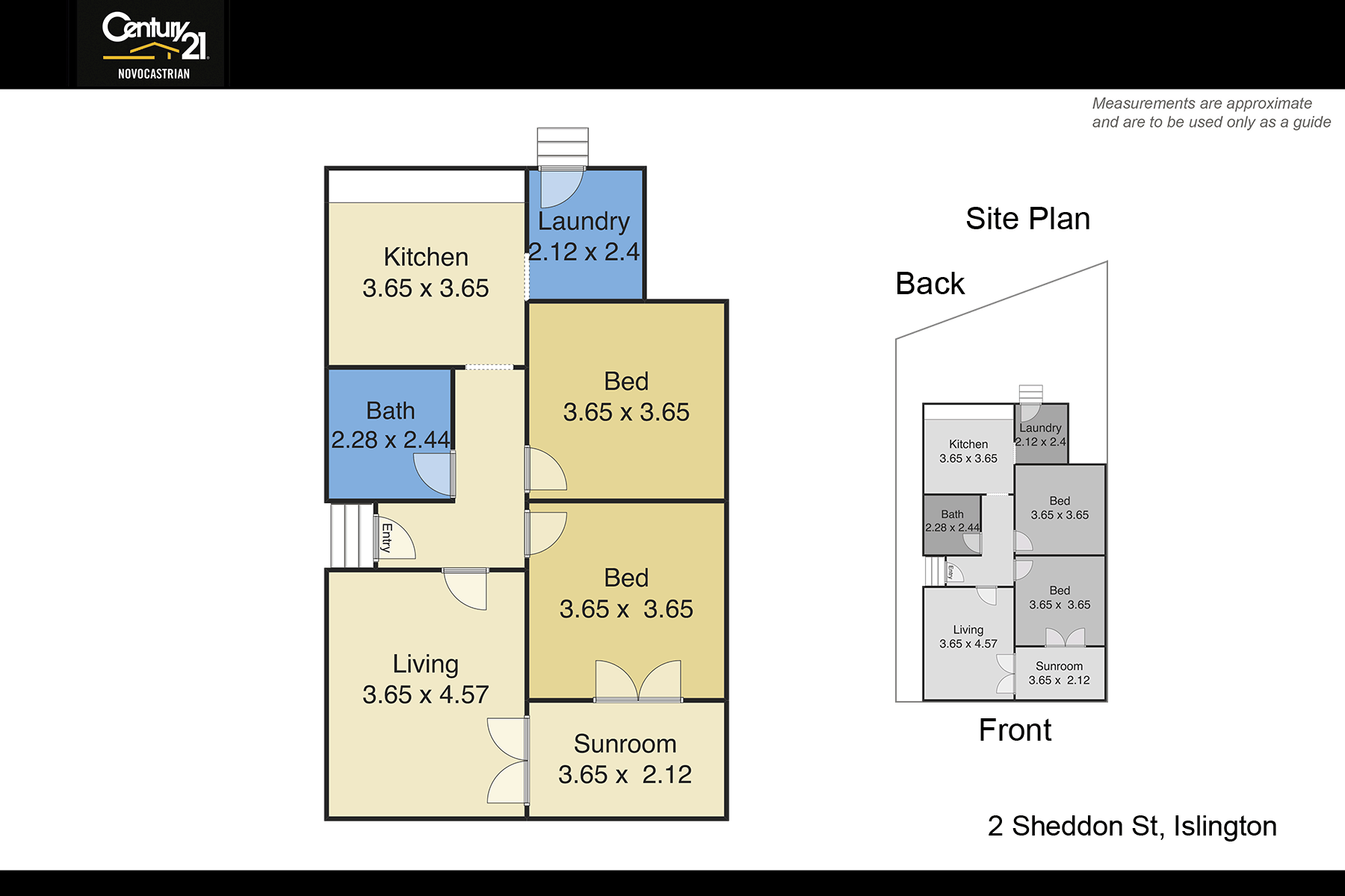 2 Bedrooms, the Main with French doors that open to adjoining sun room.Bathroom with toilet, vanity and shower over bath.Lounge with air conditioning.High ceilings throughout.Kitchen with electric cooktop and oven.Small yard with side access.